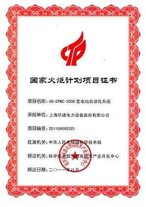 国家火炬计划项目证书