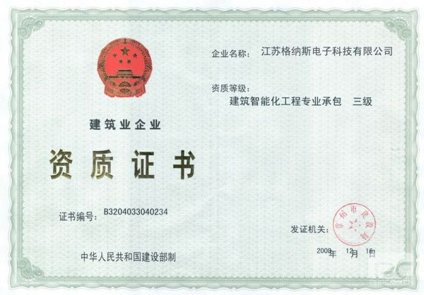 安防工程企业资质证书