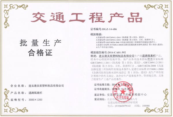 交通工程产品批量生产合格证