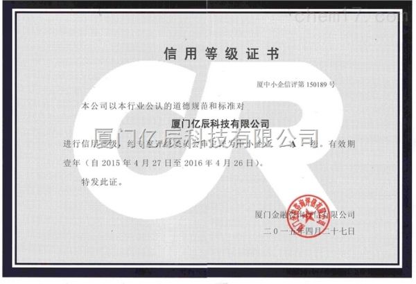 厦门金融咨询评信-信用等级A级证书(2015-2016)