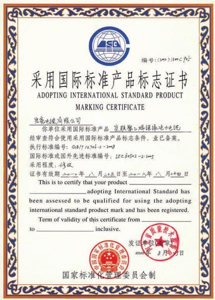 采用国际标准产品标书证书