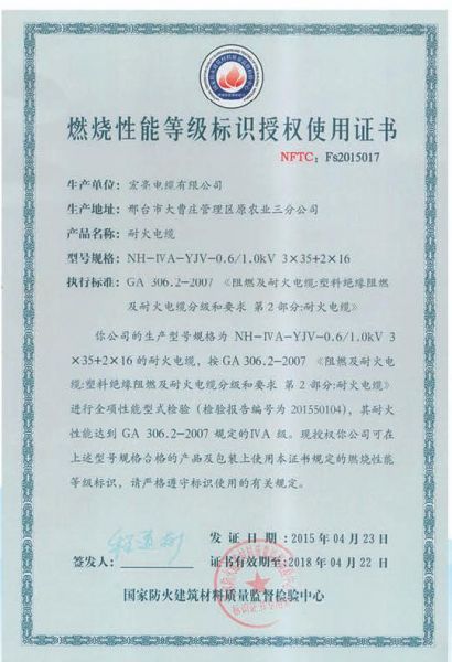 燃烧性能等级标识授权使用证书