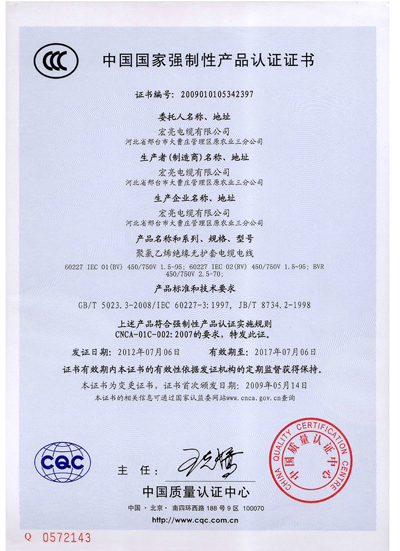 中国国家强制性产品认证证书