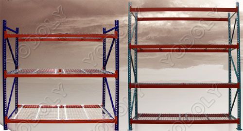 详细摘要: 立柱采用C型型材,立桂片为焊接式,横梁为阶梯梁,双片焊接式,每层放钢丝网片,每层以50.8mm节距上下调节。承载